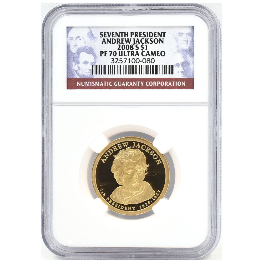 アメリカ 2008 1ドル 黄銅メッキ銅貨 NGC PF70UC アメリカ7代大統領 アンドリュー・ジャクソン 3257100080