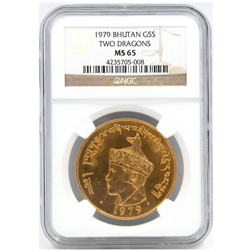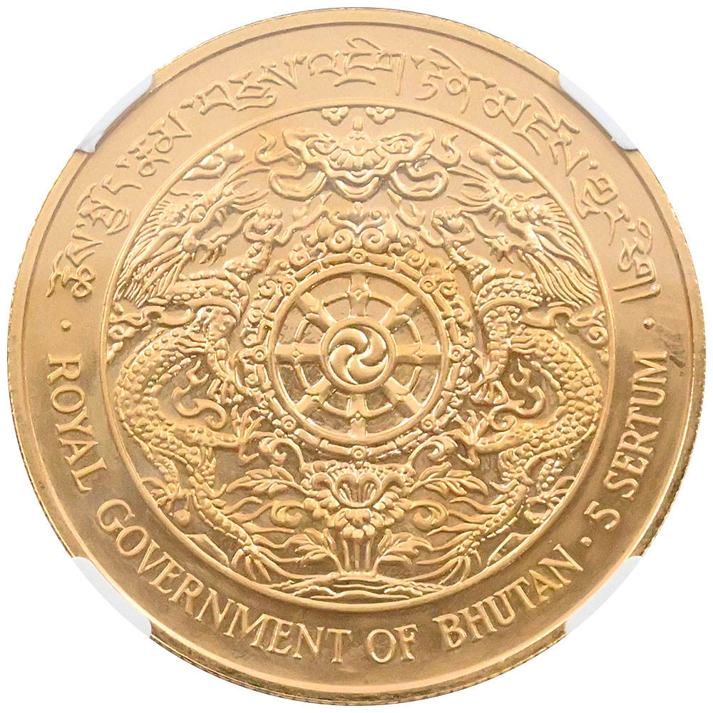 ブータン 1979 ジグミ・シンゲ・ワンチュク 5セルタム 金貨 NGC MS65 2匹の龍 4235705008