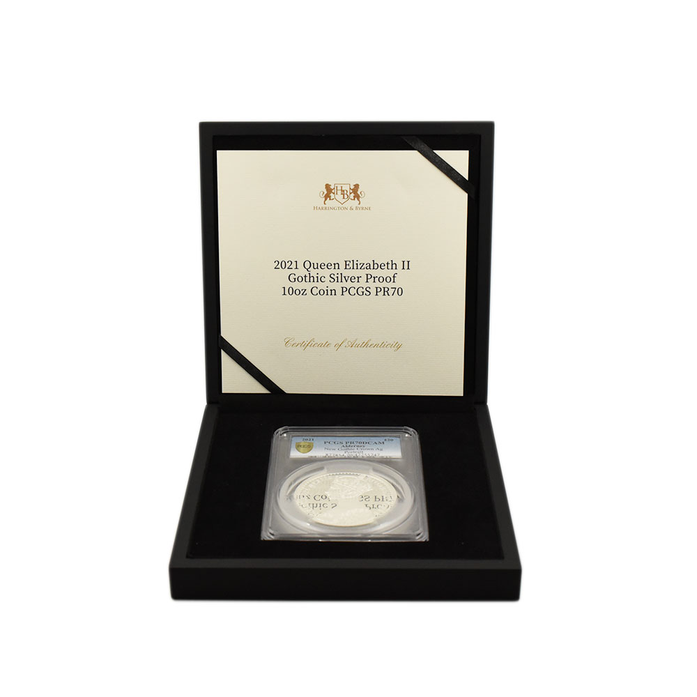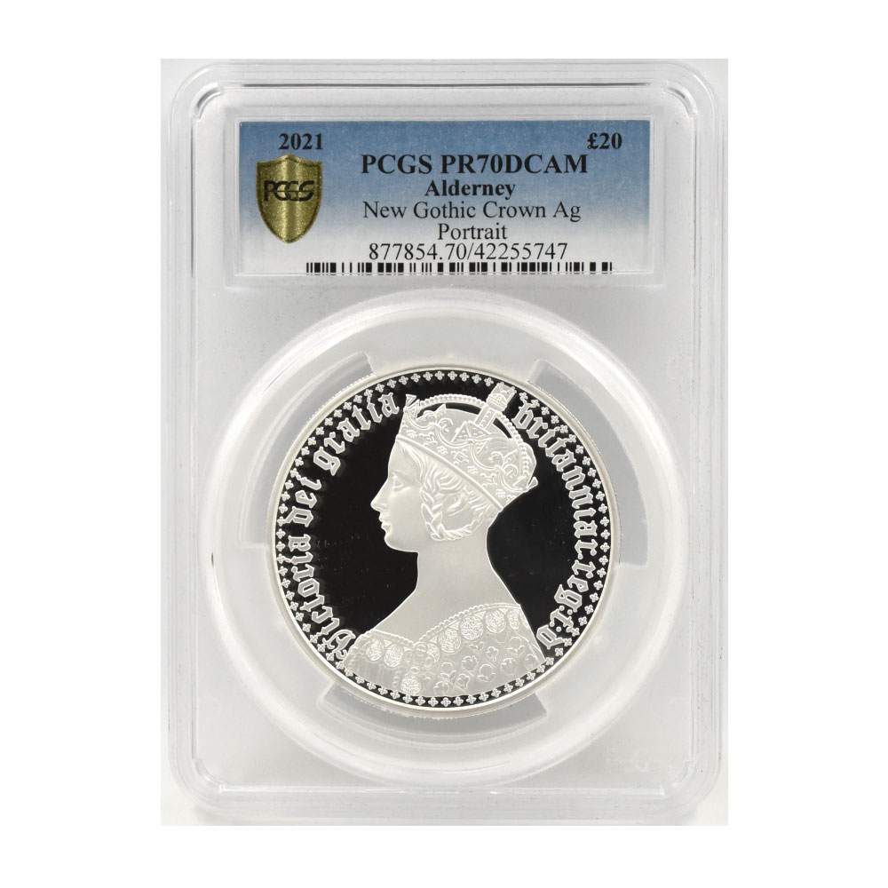 オルダニー 2021 エリザベス2世 20ポンド 10オンス 銀貨 PCGS PR70DCAM ゴチッククラウン ポートレート 42255747