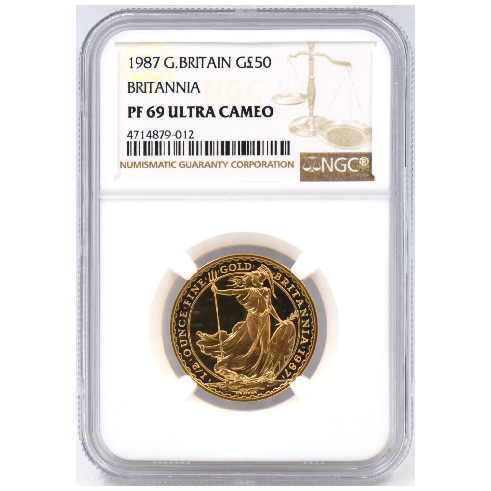 イギリス 1987 エリザベス2世 50ポンド 1/2オンス 金貨 NGC PF69UC ブリタニア 4714879012