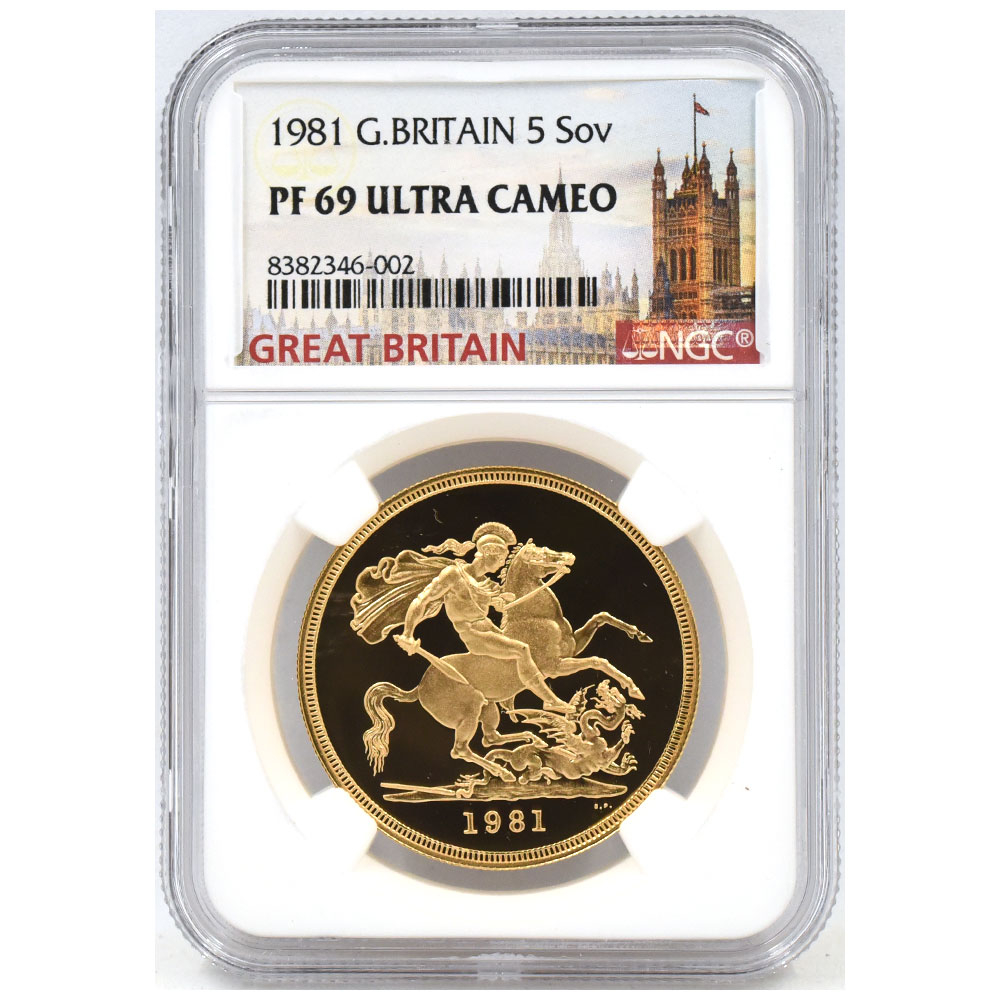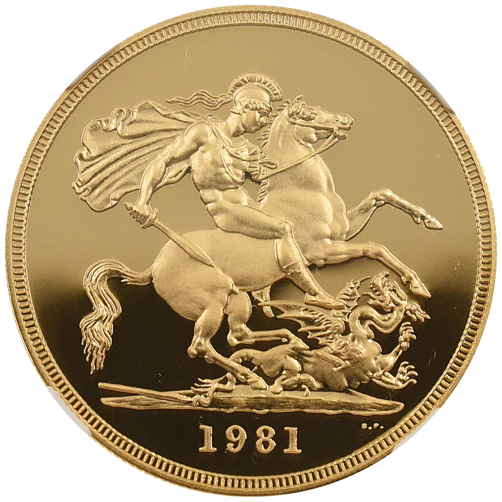 イギリス 1981 エリザベス2世 5ソブリン 金貨 NGC PF69UC 聖ジョージの竜退治 8382346002