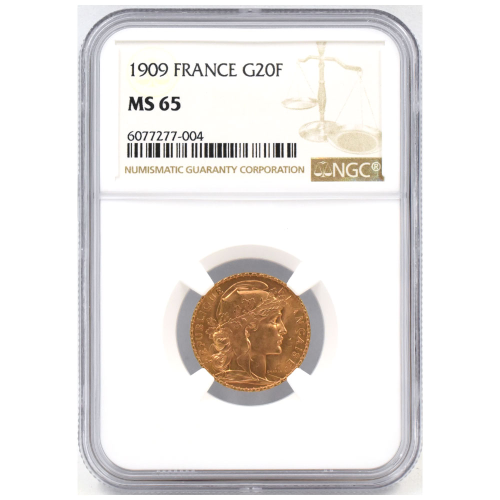 フランス 1909 20フラン 金貨 NGC MS65 マリアンヌ 6077277004