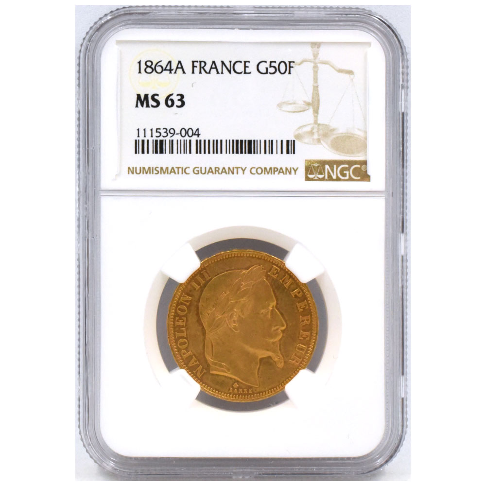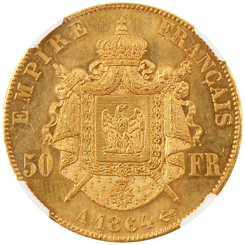 HOME > 商品一覧 > フランス 1864A ナポレオン3世 50フラン 金貨 NGC MS63 月桂冠 111539004
