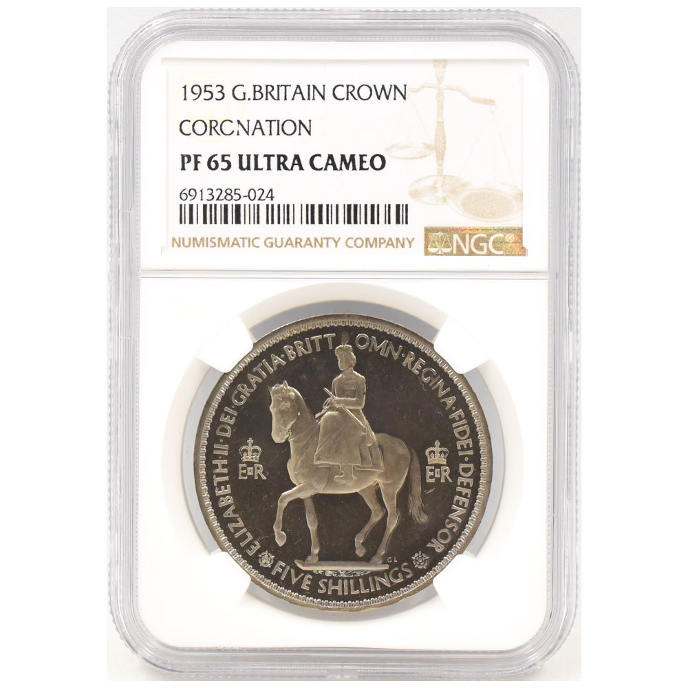 イギリス 1953 エリザベス2世 クラウン 白銅貨 NGC PF65UC 戴冠記念 馬上のエリザベス 6913285024