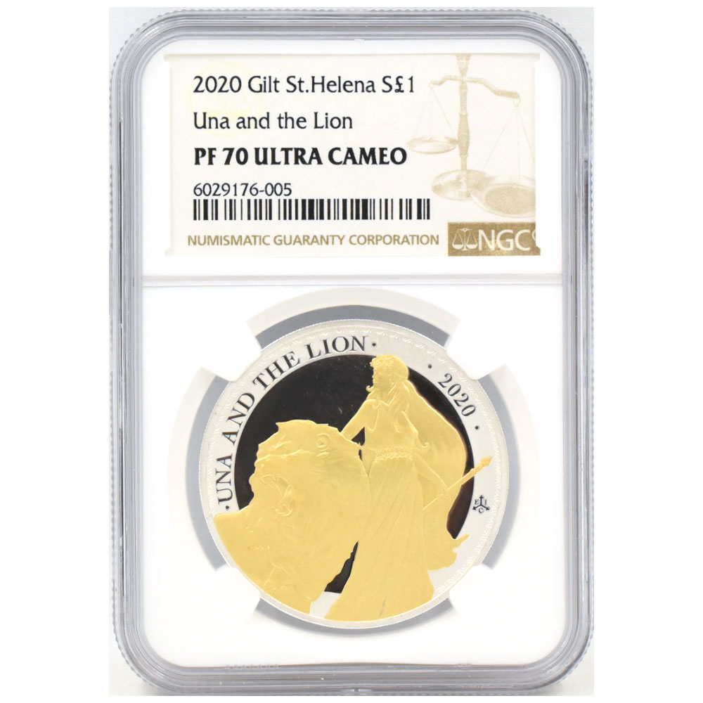 セントヘレナ 2020 エリザベス2世 1ポンド 1オンス 銀貨 NGC PF70UC ウナ&ライオン 6029176005