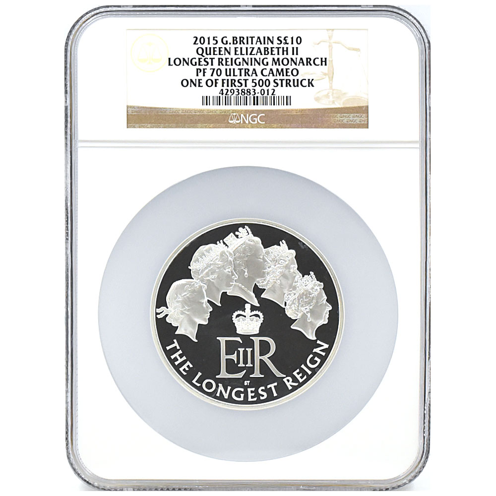 イギリス 2015 エリザベス2世 10ポンド 5オンス 銀貨 NGC PF70UC 最長在位記念 4293883012