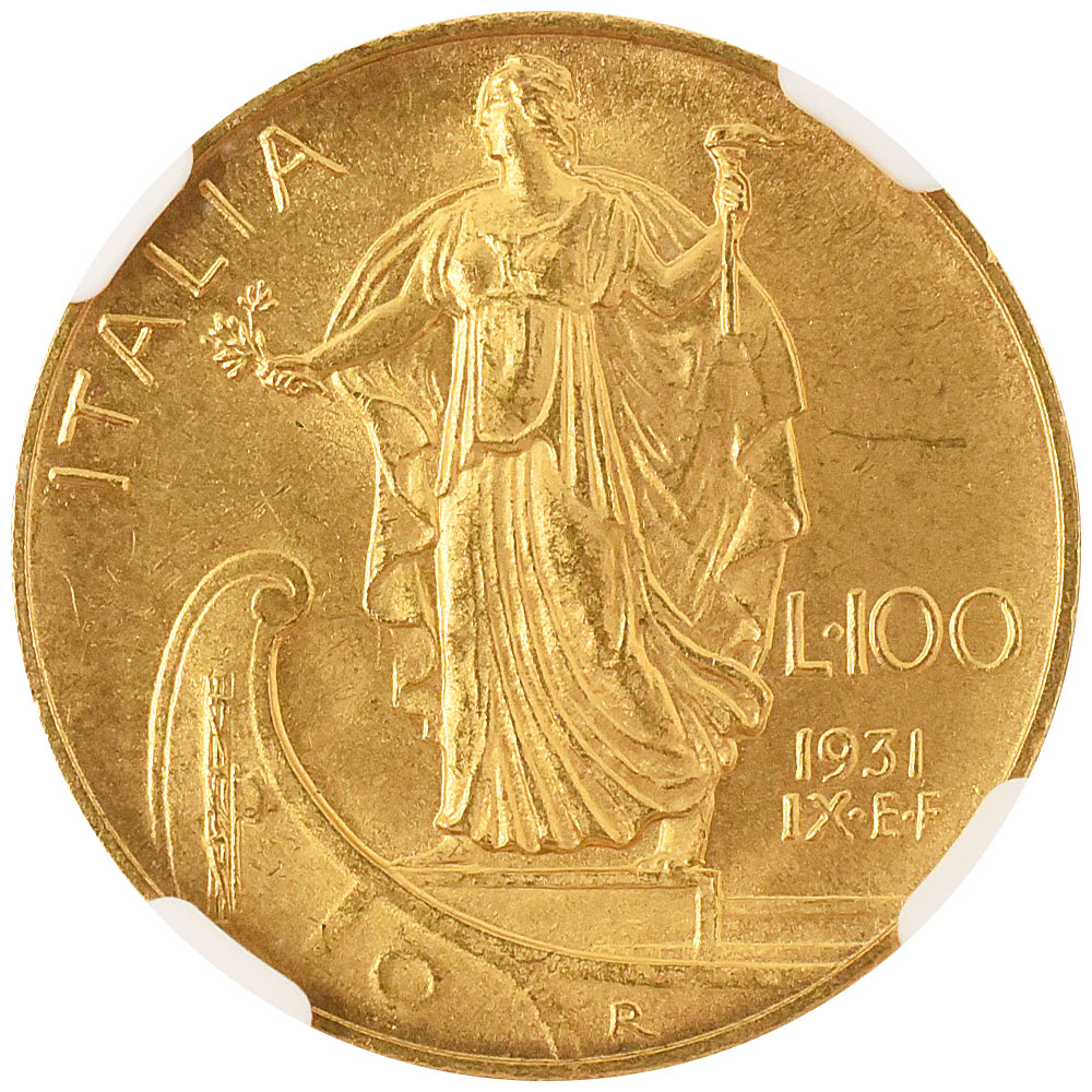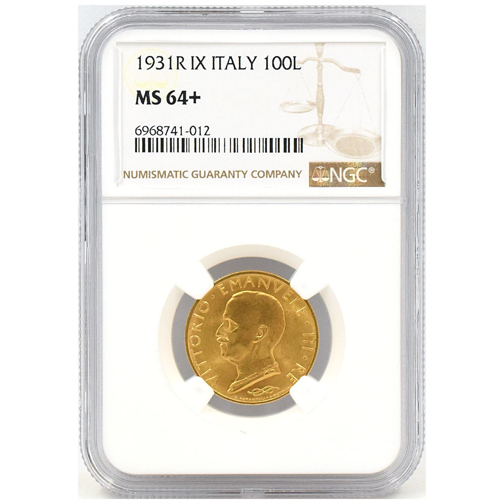 イタリア 1931R ヴィットーリオ・エマヌエーレ3世 100リラ 金貨 NGC MS64+ 6968741012