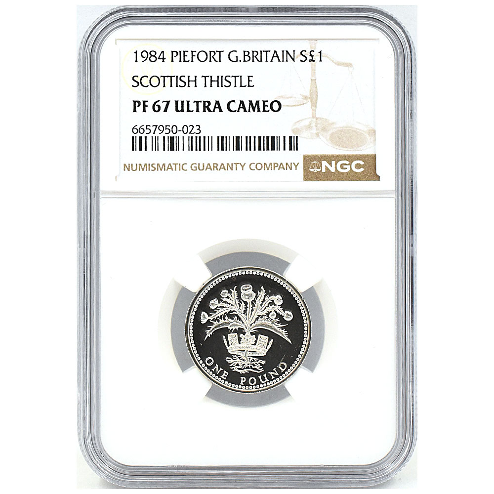 イギリス 1984 エリザベス2世 1ポンド 銀貨 NGC PF67UC スコットランドのアザミ 6657950023
