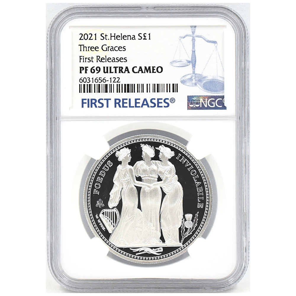 【2枚セット】セントヘレナ 2021 エリザベス2世 1ポンド 1オンス 銀貨 NGC PF69UC ウナ&ライオン スリーグレーセス 6318963012 6031656122