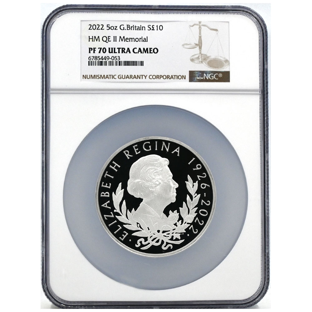 イギリス 2022 チャールズ3世 10ポンド 5オンス 銀貨 NGC PF70UC エリザベス2世追悼記念 6785449053