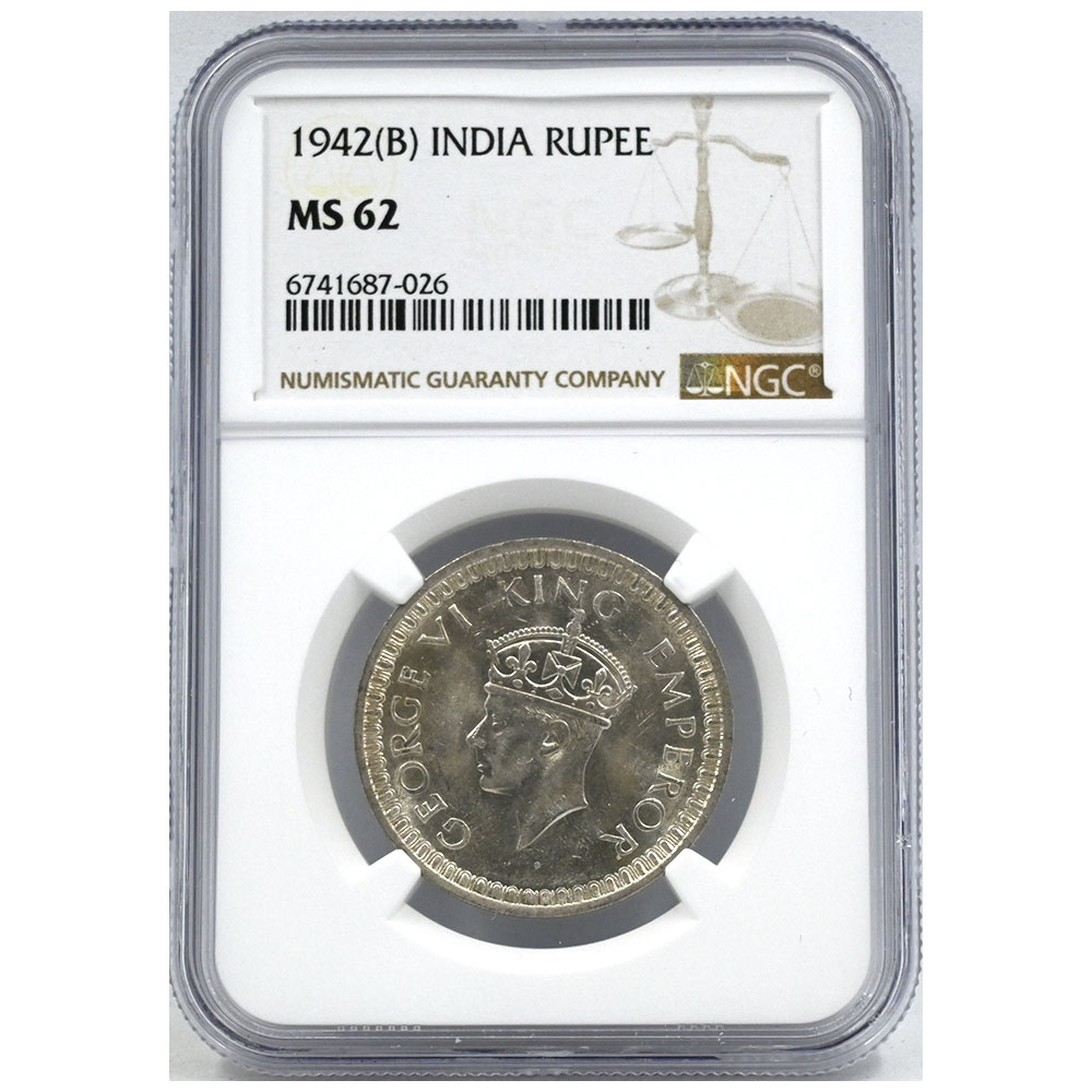 インド 1942(B) ジョージ6世 ルピー 銀貨 NGC MS62 6741687026