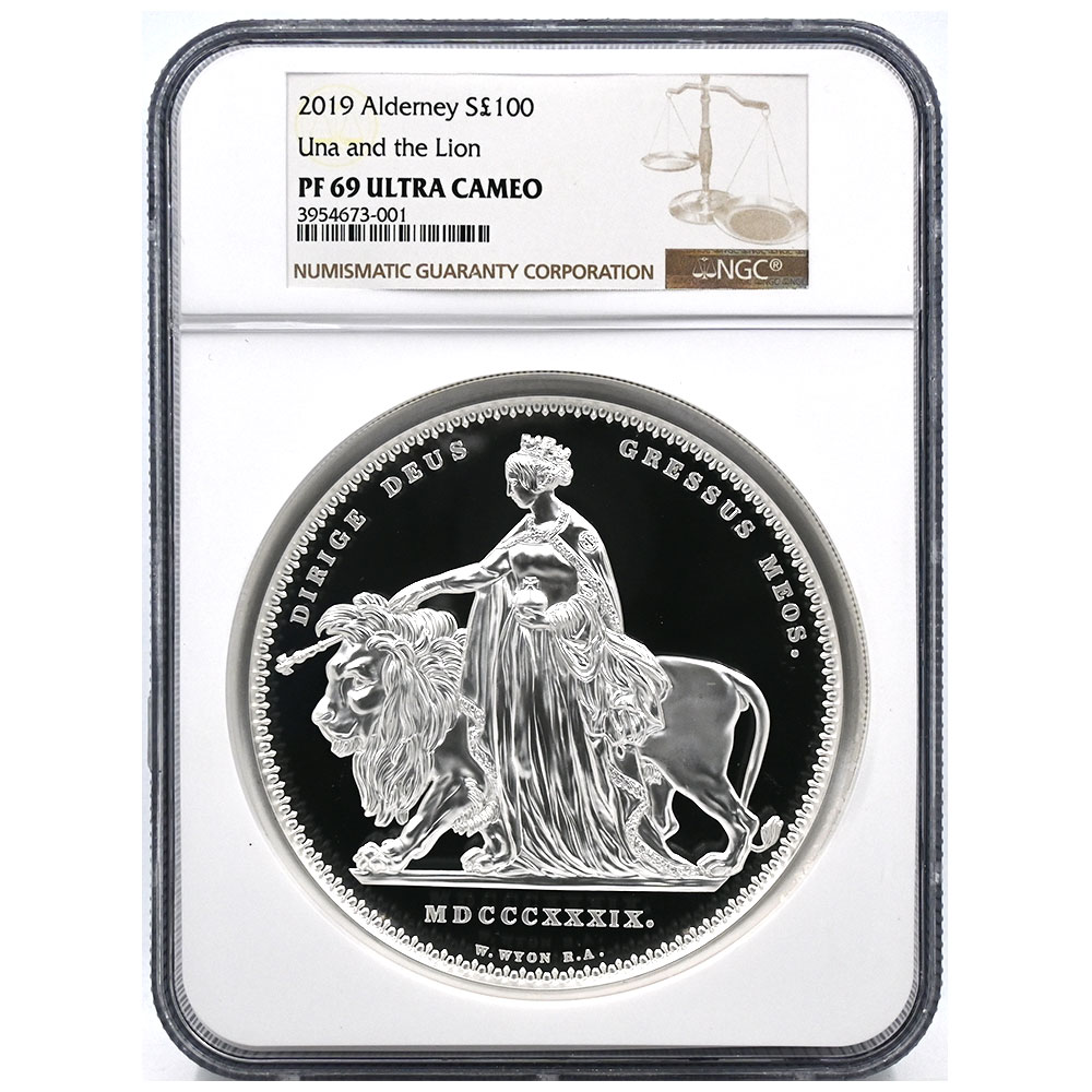 オルダニー 2019 エリザベス2世 100ポンド 1キロ 銀貨 NGC PF69UC ウナ&ライオン 3954673001