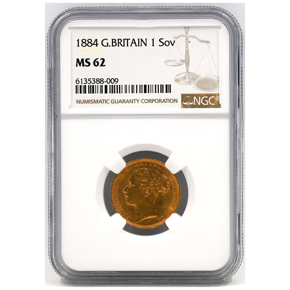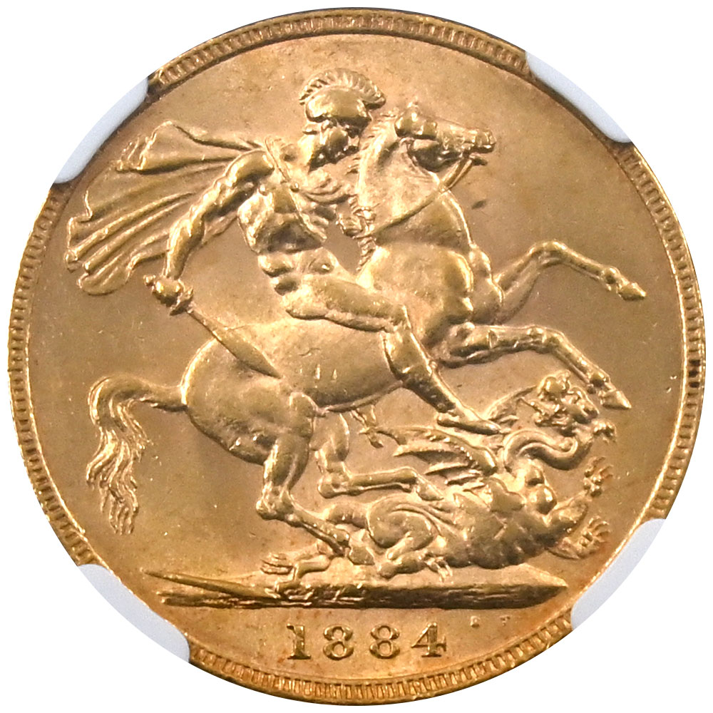 イギリス 1884 ヴィクトリア 1ソブリン 金貨 NGC MS62 聖ジョージの竜退治 6135388009