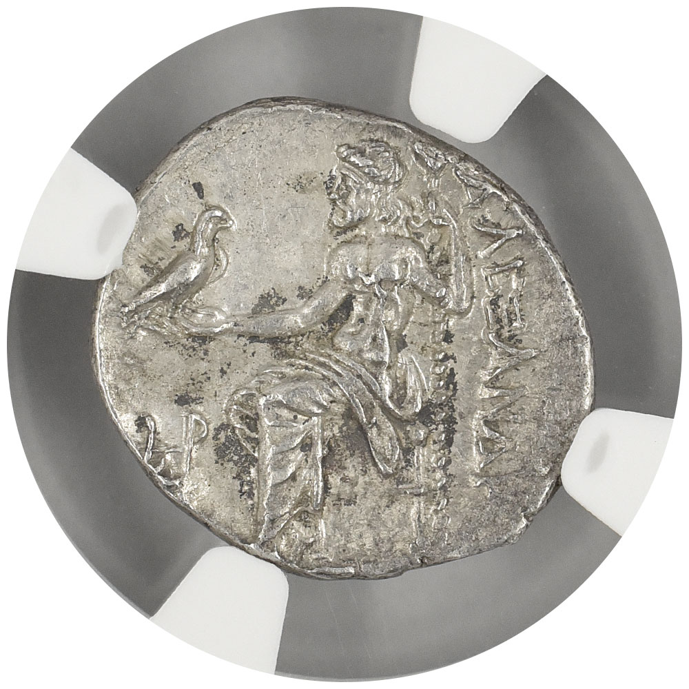#アレキサンダー大王 亡き後、#リディア 地方の中心都市サルデスで造られました。アレキサンダー大王が発行を開始したコインは帝国の基軸通貨として広く受け入れられ、大王亡き後も同様のデザインで発行され続けました。品番 13041 鑑定番号