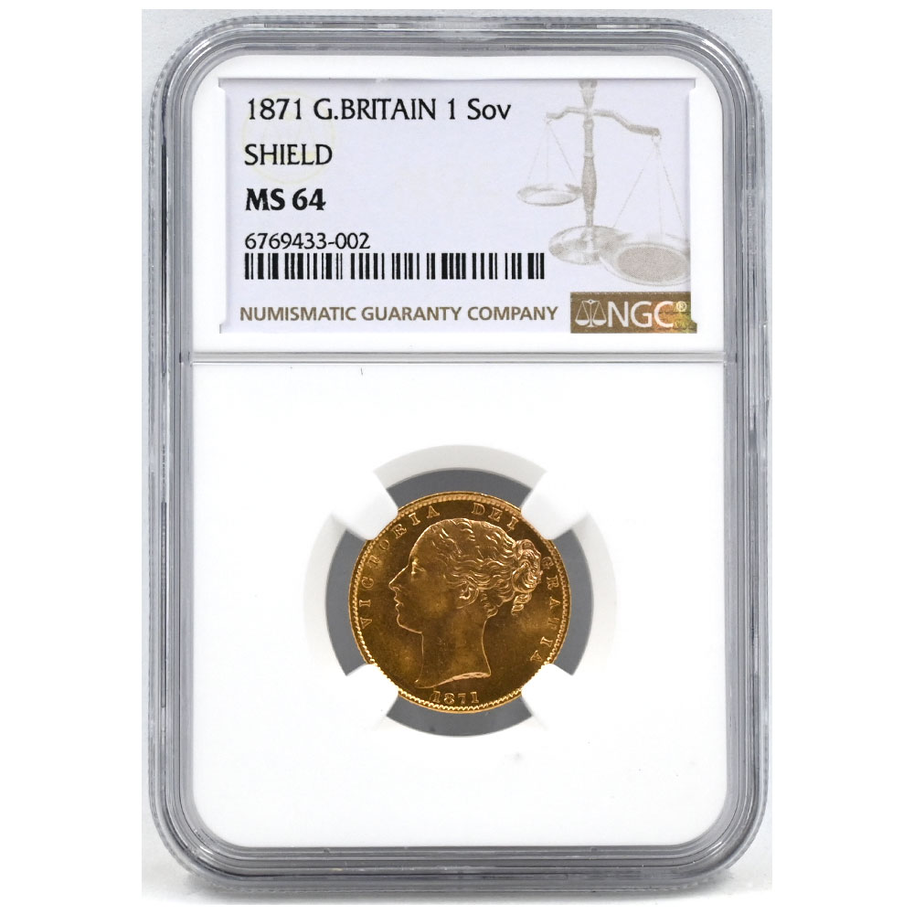 イギリス 1871 ヴィクトリア 1ソブリン 金貨 NGC MS64 盾 6769433002