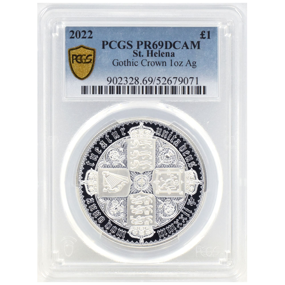 セントヘレナ 2022 エリザベス2世 1ポンド 1オンス 銀貨 PCGS PR69DCAM ゴチッククラウン・リバースシールド 52679071