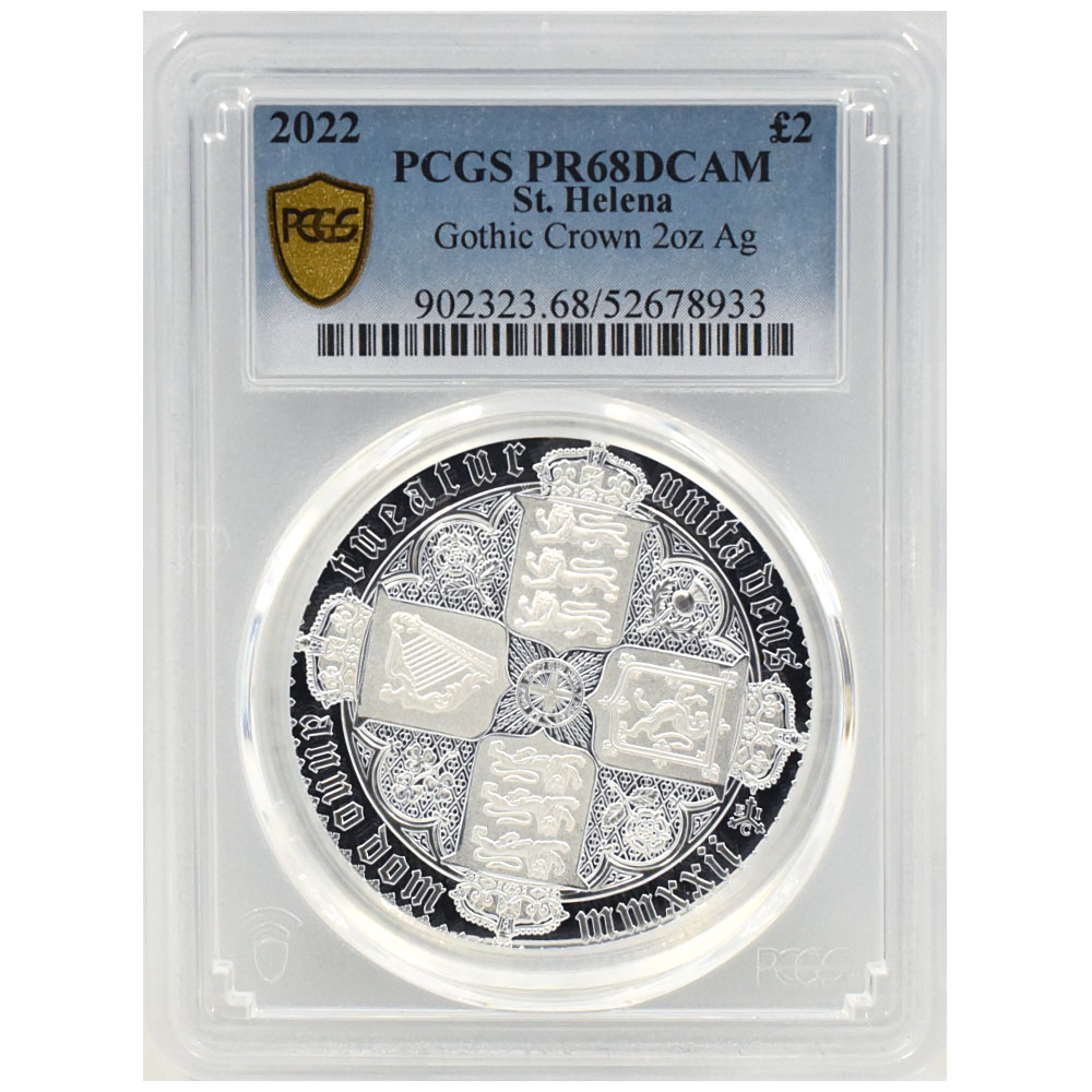 セントヘレナ 2022 エリザベス2世 2ポンド 2オンス 銀貨 PCGS PR68DCAM ゴチッククラウン・リバースシールド 52678933