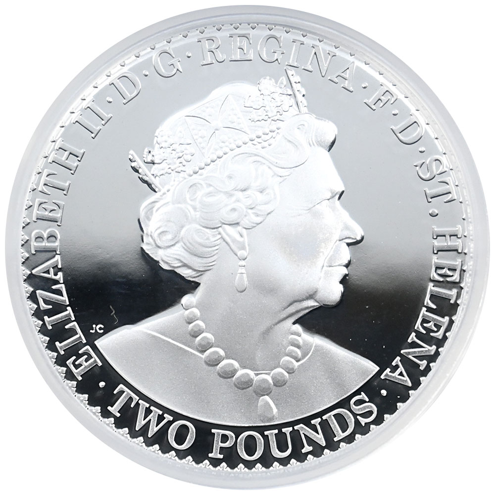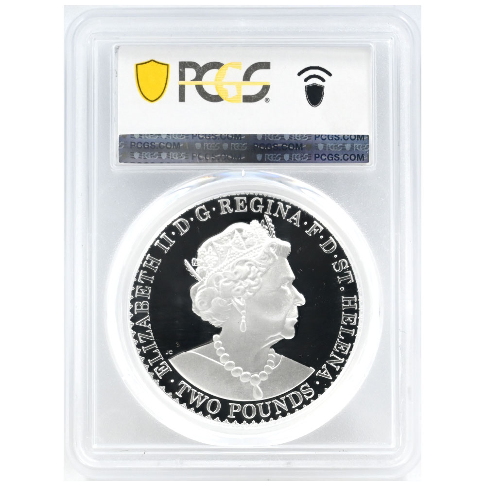 セントヘレナ 2022 エリザベス2世 2ポンド 2オンス 銀貨 PCGS PR70DCAM ゴチッククラウン リバースシールド 52679083