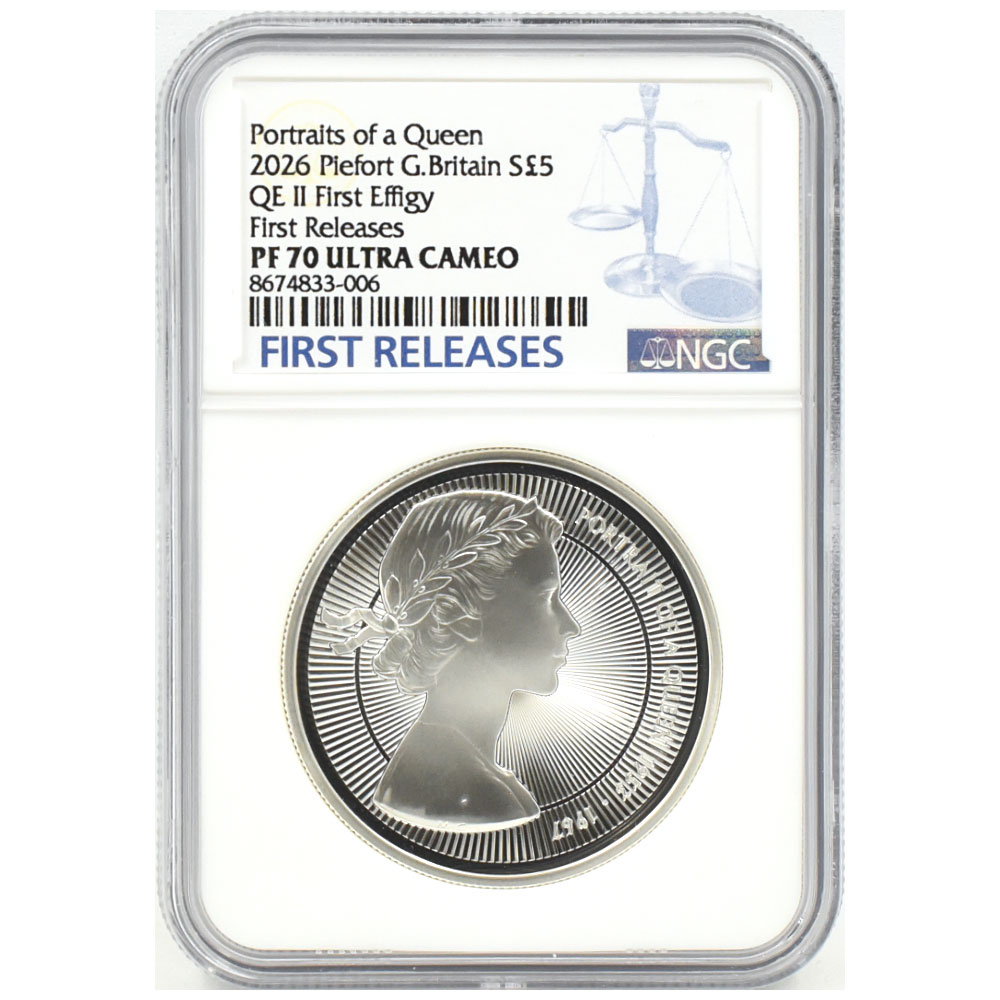 イギリス 2026 チャールズ3世 5ポンド 2オンス 銀貨 NGC PF70UC エリザベス2世のコイン肖像シリーズ 第一弾 ヤングヤングエリザベス 8674833006