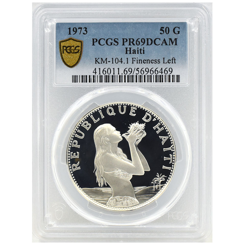 ハイチ 1973 50グールド 銀貨 PCGS PR69DCAM 貝を持つ少女 マーメイド 56966469