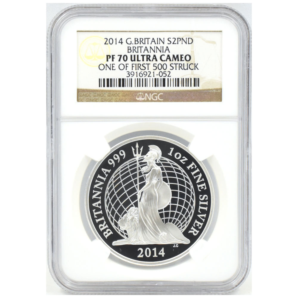 イギリス 2014 エリザベス2世 2ポンド 1オンス 銀貨 NGC PF70UC ブリタニア 3916921052