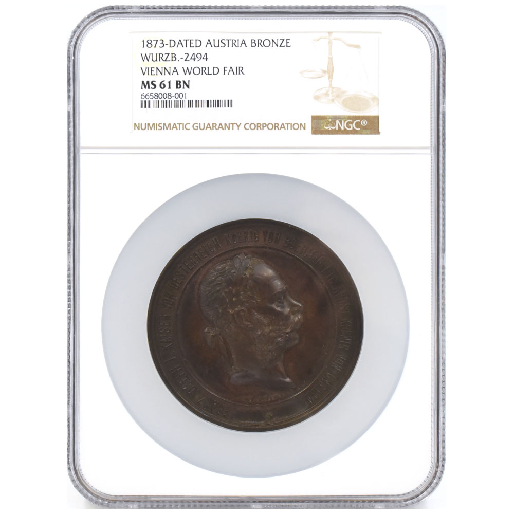 オーストリア 1873-DATED フランツ・ヨーゼフ1世 銅メダル NGC MS61BN ウィーン万国博覧会記念 6658008001