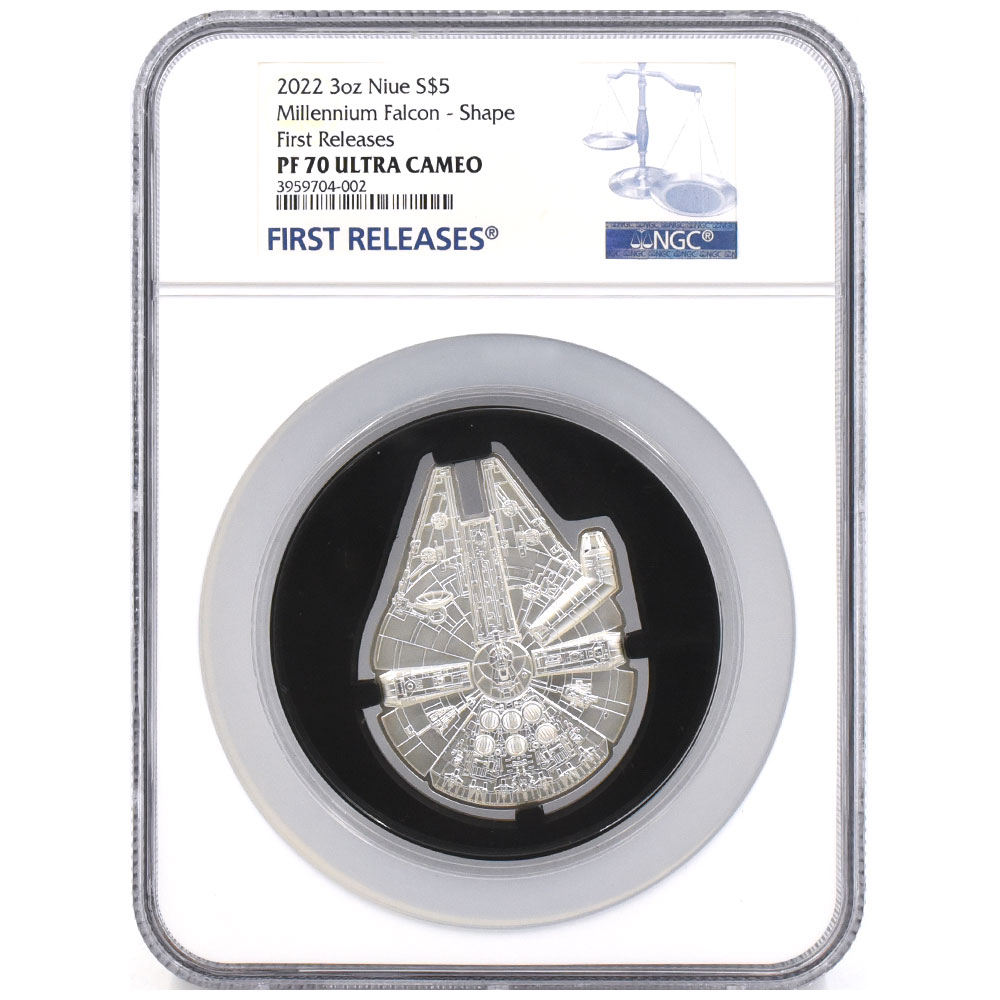 ニウエ 2022 エリザベス2世 5ドル 3オンス 銀貨 NGC PF70UC スターウォーズ ミレニアム・ファルコン型 3959704002