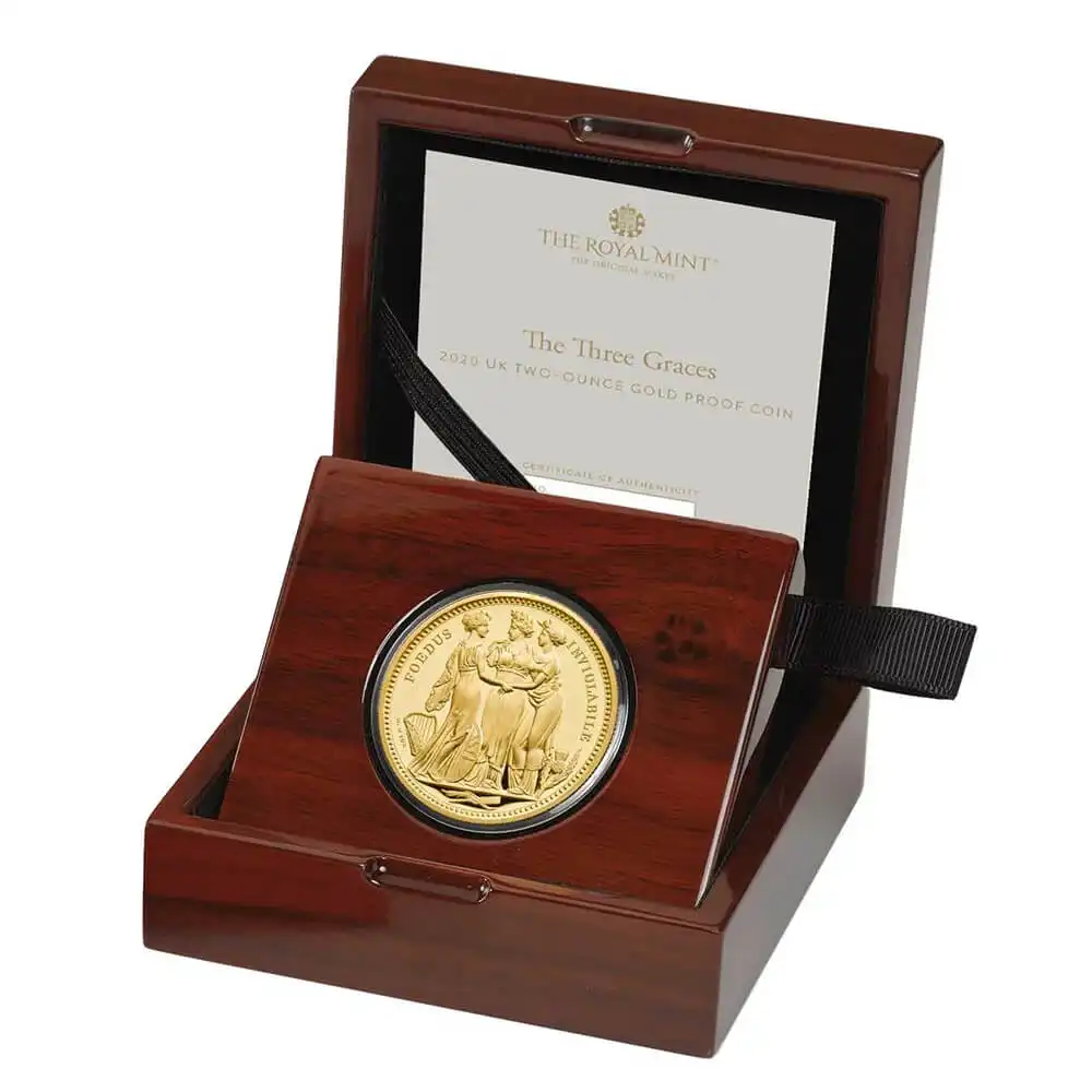 2020 エリザベス2世 スリーグレーセス 200ポンド2オンスプルーフ金貨 ロイヤルミント発行 未鑑定 箱付き 【ご予約承り品】