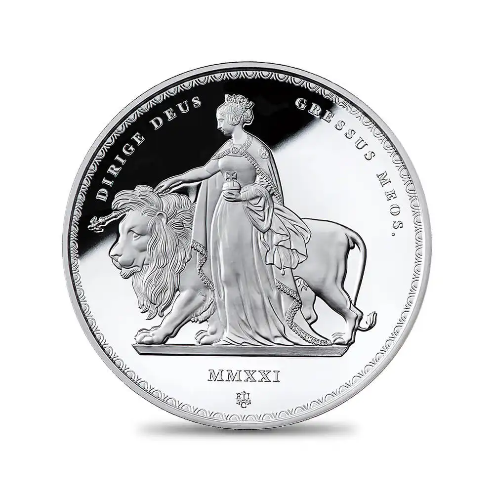 品番 1185 最大発行数 300 重量 5オンス(約156.29g) 直径 約65.00mm 品位 約99.9%Ag 表面 エリザベス2世 第5肖像(胸像版) 表面 ウナ&ライオン 納期 お問い合わせください。 -