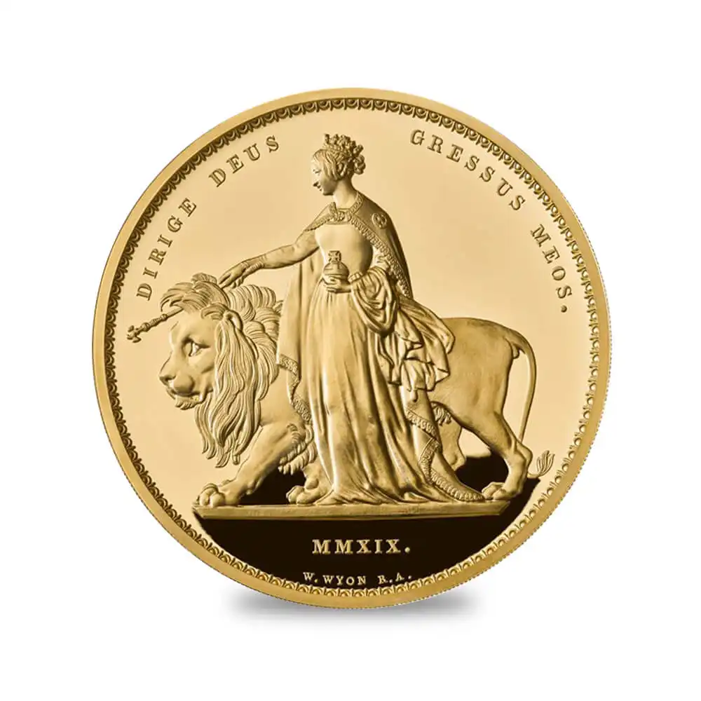 1839年に発行されたオリジナルの5ポンド金貨(ウナ&ライオン)は、ヴィクトリア女王の即位を記念する金貨として、
