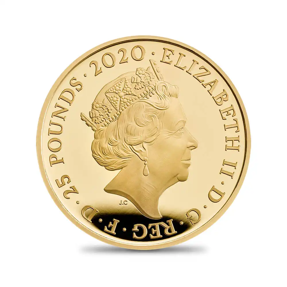 2020 エリザベス2世 ミュージックレジェンド第3弾 デヴィッド・ボウイ 25ポンド1/4オンス金貨 箱付き 【ご予約承り品】