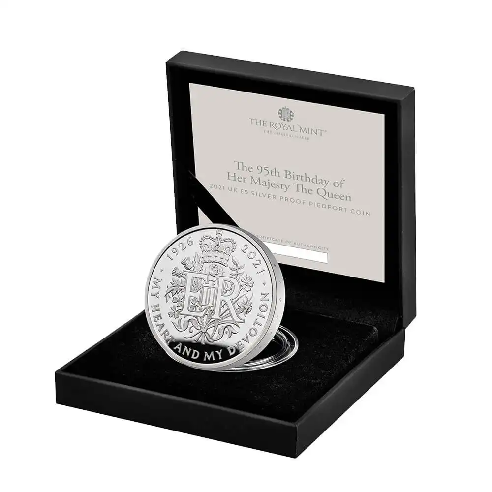 2021 エリザベス女王 生誕95周年記念 5ポンドピエフォープルーフ銀貨 未鑑定 2,236枚発行 箱付き【ご予約承り品】