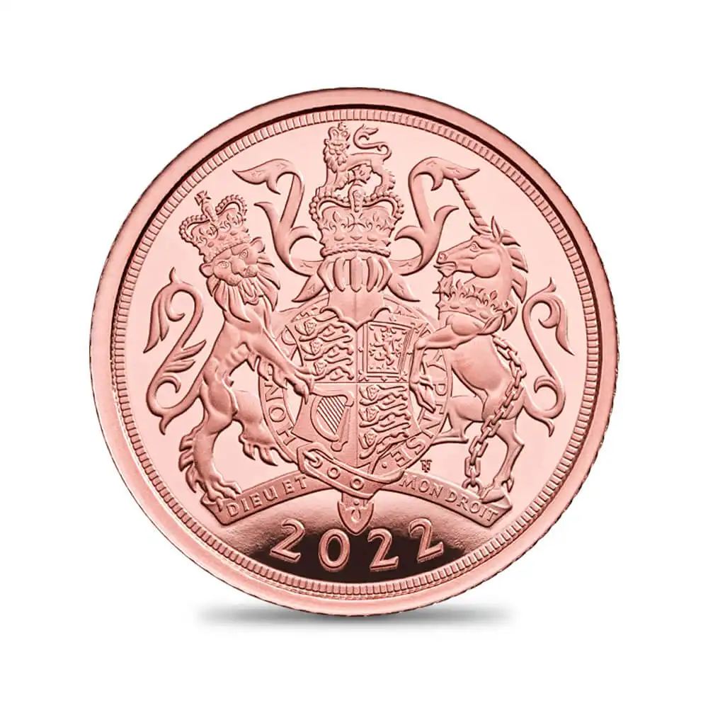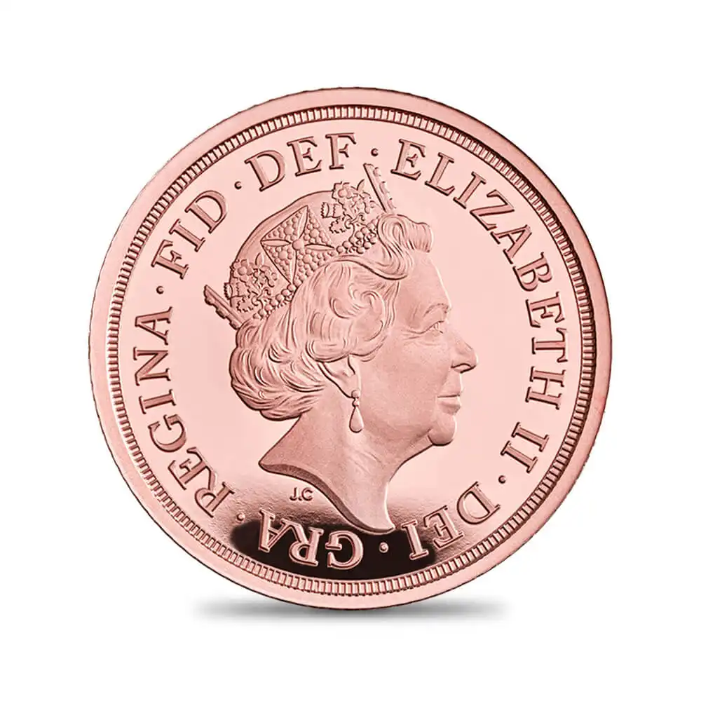 ヘンリー7世の治世下である1489年に誕生したソブリン金貨は、過去に歴代の英国君主のために数々の慶事を記念して制作されて来た究極の記念貨です。それまで流通していたエンゼル金貨に対し、玉座に坐る国王を描いたために、ソブリン(君主)と命名されました。このいにしえのソブリン金貨は、1604年を境に製造が打ち切られます。しかし英国が1816年に金本位制を採用し、新しい本位金貨が制定され、これをソブリンと名付け、翌年以降再び鋳造されることとなりました。英国貨幣史上の芸術的勝利と言っても過言では無いソブリン金貨の発行は、ロイヤルミントによる各王朝時代のコイン鋳造の頂点を極めるものです。その力強い輝き、圧倒的存在感、信頼性、そして何よりも正確さにおいて他の貨幣より抜きん出ているソブリン金貨は、時代を超えて愛され、英国王室の輝かしい過去を投映し続けて来ました。金本位制の制定と共にジョージ3世の治世下に再び蘇ったソブリン金貨ですが、この復活後初の金貨は名高く、それ以降のソブリン金貨の原型となり、現代に至るまで踏襲され続けているこのタイプの金貨ならではのクオリティーの高さを誇示する優れたデザイン性によって一世を風靡しました。特に裏面のデザインは、稀代の彫刻家ベネデット・ピストゥルッチの最高傑作として現在でも高い人気を誇ります。1952年、父王ジョージ6世の崩御に伴い英国君主としてエリザベス女王が即位されてから2022年で70周年(プラチナジュビリー)を迎えます。この容易に到達することの出来ない至高の瞬間を彩るに相応しいコインはソブリン金貨を置いて他にありません。若き日にテレビ放送において英国と英連邦への真心と献身を誓われた女王陛下ですが、その後数えきれないほどの公務を遂行され、行動によって国民との約束を果たされました。当ソブリン金貨の発行は女王陛下の過去70年間の人生に対する総決算としてロイヤルミントが打ち出す空前の企画に他なりません。