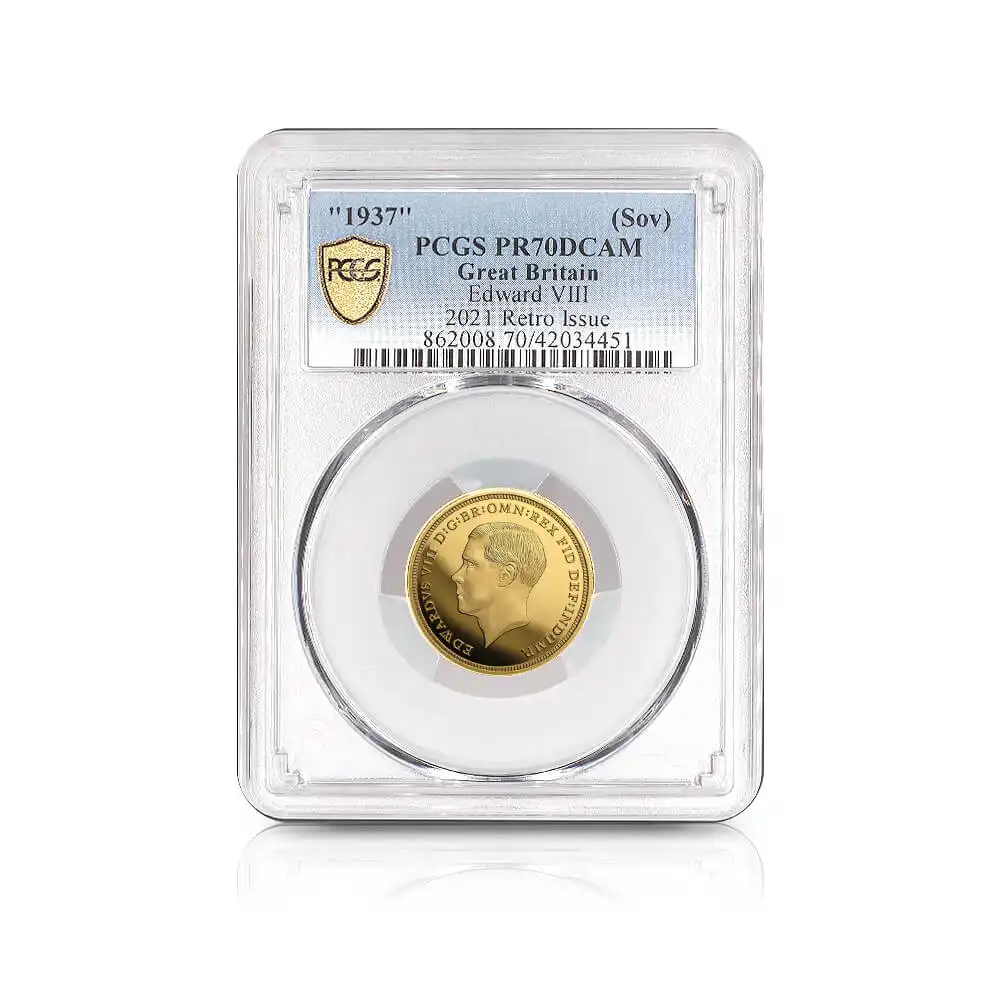 2021(1937) エドワード8世 聖ジョージの竜退治 ソブリン金貨 復刻金メダル PCGS PR70DC【ご予約承り品】