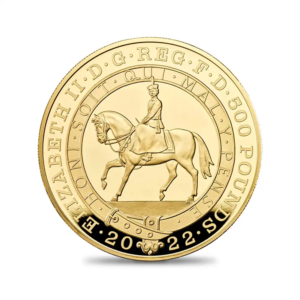 70年という前人未到の記録を樹立しつつある現英国女王エリザベス2世ですが、その非現実的とも思える事象をコイン上に現実的に体現することは至難の業です。しかしこの度の商品ラインアップのリストを見てみますと、この捉えどころの無い程に偉大なる功績が見事に視覚化されている点に驚かされます。中でも今回ご紹介させて頂く10ポンドから1000ポンドまでの限定版ゴールドとシルバーコインのデザインはプラチナジュビリーならではの特別仕様で、かつてリリースされたジュビリー関連のコインと比較しても遜色の無いものとなっています。この21世紀屈指の傑作の生みの親は、ロイヤルミントの経験豊かな実力派デザイナー、ジョン・バーグダールです。伝統に敬意を表しつつも現代的感覚が感じられる完成度の高い意匠が、この空前絶後のアニバーサリーを現代の事象として捉えていると感じさせるところに好感が持てます。このバージョンのコイン表面には、1953年の戴冠記念クラウン貨と2002年のゴールデンジュビリークラウン貨で用いられていたものと思しき馬上の女王の肖像へのオマージュが掲げられています。そして裏面ですが、先ず上部に至高の英国王位を象徴する大英帝国王冠が見られ、中央にはロイヤルサイファと称する女王の王名を簡略化した紋章、さらに下部には治世の始まりの年1952から本年2022年までの西暦がそれぞれバランスよく配置されています。そしてその周囲には多種多様な花々が咲き乱れ、この超然の瞬間を華麗に彩っています。英国王室の栄光の軌跡とロイヤルミントの1000年にわたる悠久の歴史を象徴するモダンコインの大作の満を持しての解禁となります。