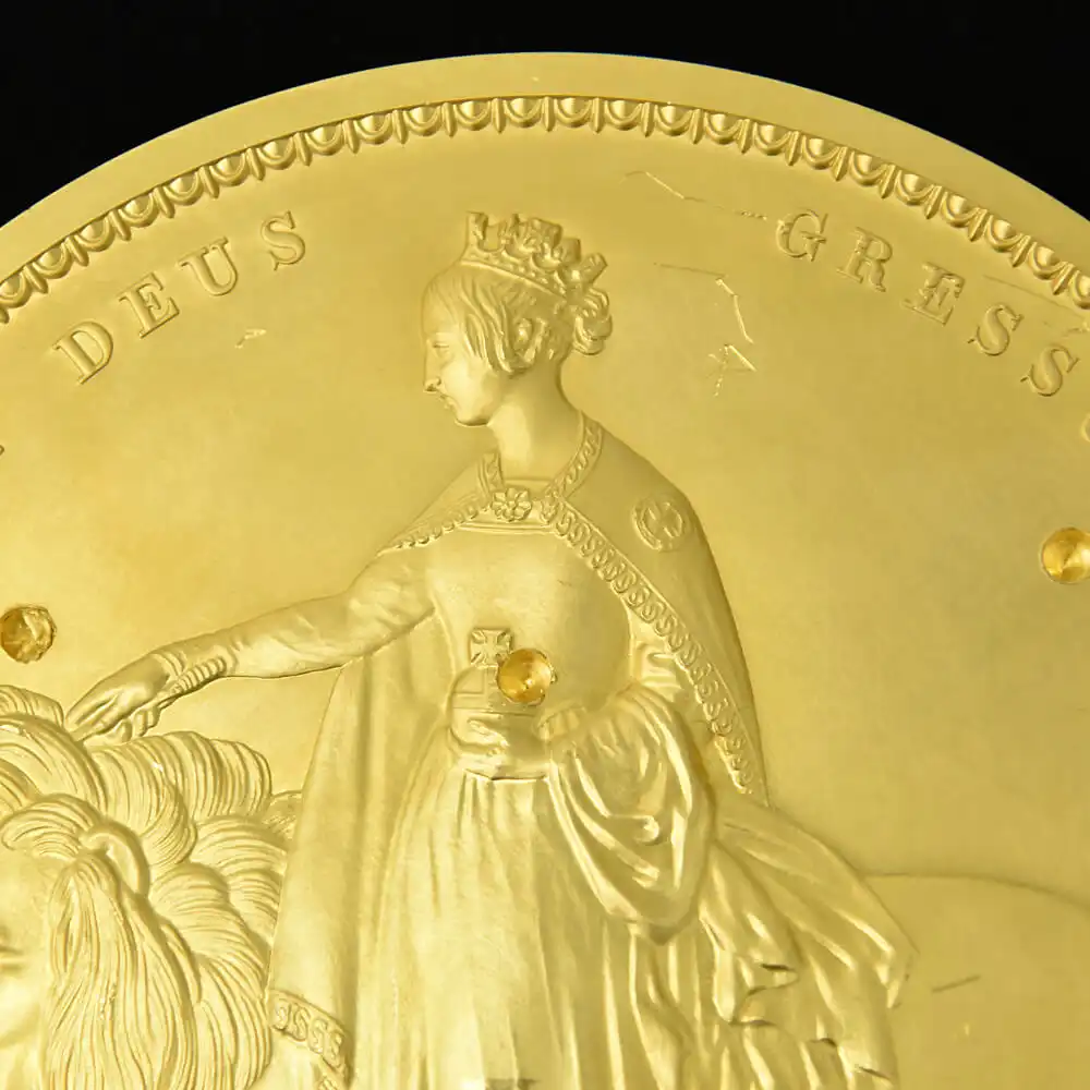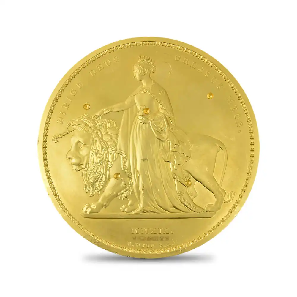 「ウナとライオン」の伝説からはや200年、稀代の名君ヴィクトリア女王の生誕二百年の良き年に制作された当金貨は、試鋳貨の前段階において品質を精査する目的で制作される史上最重量級にして世界唯一の「ウナとライオン」のトライアルピースとして貨幣史上に深く刻まれる幻の名品です。ヴィクトリア時代のオリジナルのデザイナーであるウィリアム・ワイオンへのオマージュとしてリマスターされた当トライアルピースは、2019年にロイヤルミントによって発表された「偉大なる彫刻家シリーズ」の第一弾を飾るに相応しい圧倒的重厚感と芸術性を同時に兼ね備えています。12世紀にその起源をもつ英国独自の貨幣審査儀式である「Trial of the Pyx」の承認を見事通過した当トライアルピースは、英国における最高権威の認定を勝ち取った大名品ということになり、付随する特別の鑑定書が至上の血統を保証します。