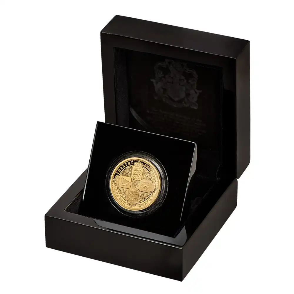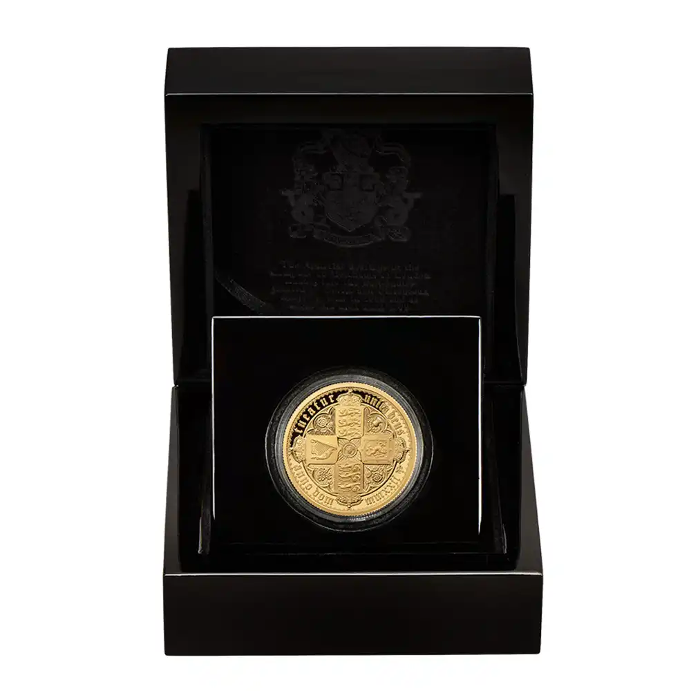 セントヘレナ 2022 エリザベス2世 ゴチッククラウン 十字の盾の紋章 5ポンド2オンスプルーフ金貨 未鑑定 箱付き【ご予約承り品】