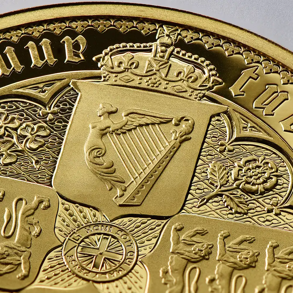 品番 1420 最大発行数 125 重量 2オンス(約62.2g) 直径 45mm 品位 約99.9%Au(K24) 表面 エリザベス2世 第5肖像(胸像版) 表面 四つの盾(FOUR SHIELDS) 納期 お問い合わせください。 -