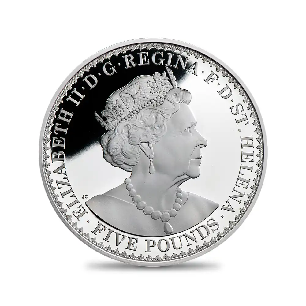 セントヘレナ 2022 エリザベス2世 ゴチッククラウン 十字の盾の紋章 5ポンド5オンスプルーフ銀貨 未鑑定 箱付き【ご予約承り品】