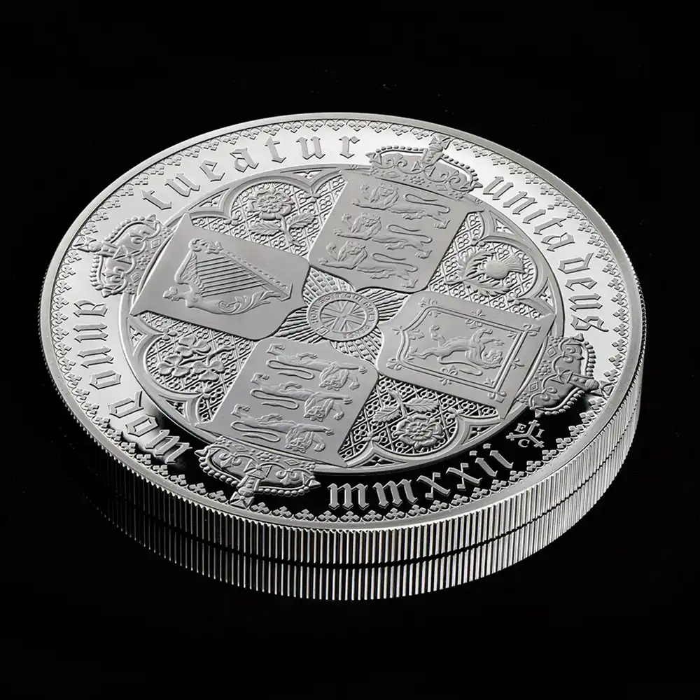 セントヘレナ 2022 エリザベス2世 ゴチッククラウン 十字の盾の紋章 5ポンド1キロプルーフ銀貨 未鑑定 箱付き【ご予約承り品】