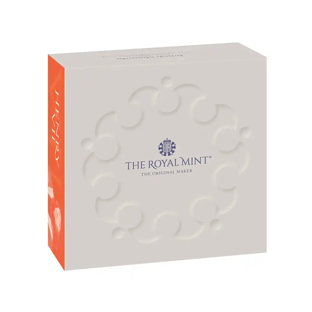 2022年に英国ロイヤルミントによってリリースされる「英国君主コレクション」と銘打たれた新しいコインシリーズは、歴代英国国王とその栄光の在位にスポットを当てる夢の企画です。過去にロイヤルミントが成功させた数々のコインシリースは年1回のリリースが大半でしたが、当シリーズは今後5年間にわたり年4,5回の発行が計画されており、2026年に誕生100周年を迎えられる現英国女王エリザベス2世のコインの発行によって華々しく完結する見込みです。15世紀に開かれたテューダー朝から始まり、ステュアート朝、ハノーヴァー朝、サックス・コバーグ・ゴータ朝、そして現在のウィンザー朝へと連なる英国王室の悠久の歴史を雄弁に物語る当コインシリーズは、ソブリン貨を中心とするそれぞれの君主の治世を代表する名貨のデザインを採用し、21世紀に蘇らせます。コレクターを始めとするコイン関係者を唸らせるに十分なこの壮大なるプロジェクトは、背景となる英国史に対する社会的興味を増幅させ、個々の王朝に対する理解を深めるという大義を果たすべく誕生しました。この待望のコレクションの第1弾として、テューダー朝の始祖ヘンリー7世のデザインの採用が決定しましたが、同国王の治世を代表する精緻を極めたコイン・ポートレートが今、500有余年の歳月を経て我々の時代に再現されることは誠に喜ばしいことです。ウェールズ王家の血統を受け継ぐヘンリー7世の波乱に満ちた治世は、英国におけるルネッサンス期の幕開けを象徴する画期的な時代として記憶されています。絶対的王権の保持者を自認していたヘンリー7世は、決して近世以降の立憲君主のような象徴のみの存在ではありませんでした。馬に跨って戦塵の巷で陣頭指揮を取り、国家に確実な勝利をもたらす手腕を発揮する真の勇者としての資質が浮かび上がってきます。また宿敵ヨーク家の王女エリザベスとの婚姻によって15世紀初頭のイングランドを翻弄した薔薇戦争を終結され、その後の英国の対外的権威の確立を実現し、王権の強化を体現したヘンリー7世の驚異的な存在感は、王の長子であるヘンリー8世によって受け継がれテューダー朝の最盛期を構築します。現代最先端のコイン製造技術によって蘇るのは、ヘンリー7世の治世下に発行されたグロート貨(4ペンスに相当)表面のポートレートで、このテューダー朝の創設者の生前の有り余る権威を表出するのみならず、15世紀のハンマー打ちコインならではの不完全な魅力と独特の古色を忠実に再現しています。