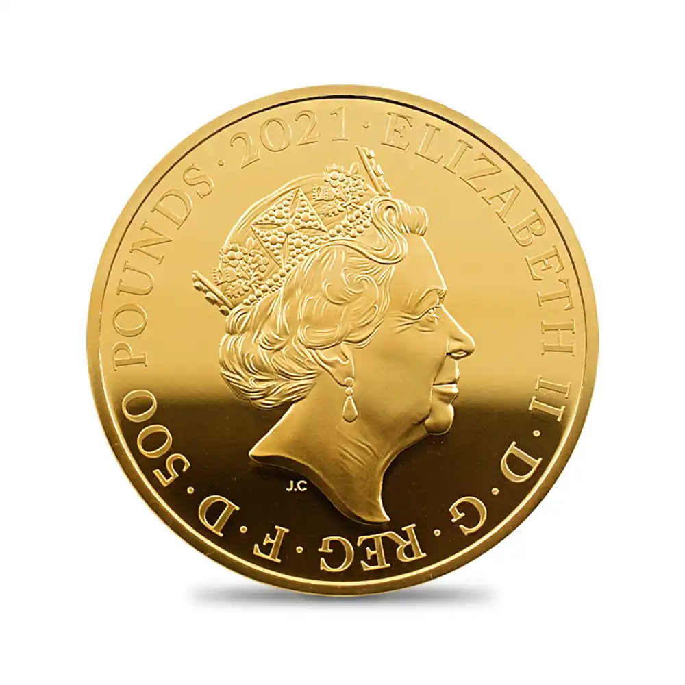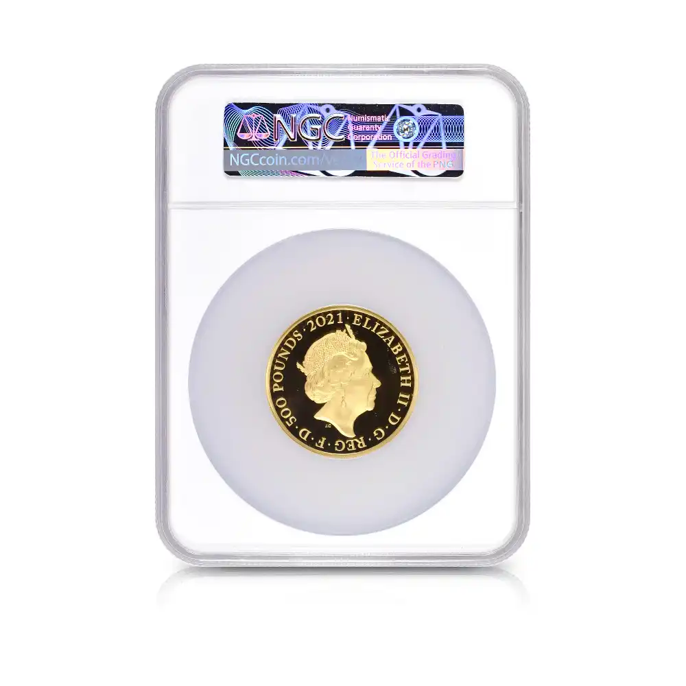 2021 エリザベス2世 ゴチッククラウン・リバースシールド 500ポンド5オンス金貨 ロイヤルミント発行 発行即日鑑定品 NGC PF70UC 箱付き【ご予約承り品】