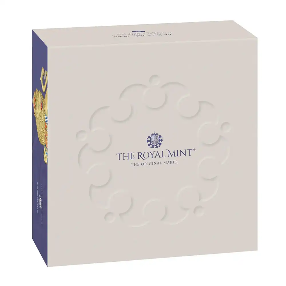2022年の幕開けと共に英国ロイヤルミントが発表したコインシリーズ「ロイヤル・テューダー・ビースト・コレクション」は、ハンプトンコート宮殿のモートブリッジの欄干に連立する10の紋章学上の動物のシンボルをコイン上に刻む新機軸として紹介されるものです。そのインスピレーションの源は、2016年から5年間にわたってリリースされた人気コインシリーズ「クイーンズ・ビースト・コレクション」の空前の成功であり、同シリーズの続編として注目を集め、今後のリリースが大いに期待されています。今回のコレクションが取り挙げる10のシンボルは、クイーンズ・ビーストのそれと共通するものも何点か含まれますが、16世紀の英国王ヘンリー8世の格別の愛顧によって王室にもたらされ、受け継がれるに至った紋章学上の動物から成り立っていることを最大の特徴とします。2021年に発表された同コレクションの第1弾には「シーモアの豹」が選ばれ、空前の成功を収めたことが記憶に新しく残っています。そして待望の第2弾には、かつて「クイーンズ・ビースト・コレクション」においても感動的な初リリースを飾った「イングランドのライオン」が選ばれ、色褪せることのないこの永遠のシンボルの重要性が改めて強調される結果となりました。コレクションに含まれる10の動物の中でも長い歴史を誇り、最も象徴的な紋章学上の動物として知られている「イングランドのライオン」ですが、その起源は少なくとも12世紀にさかのぼり、以降王室の盾の紋章の一部分として常に別格の扱いを受けて来ました。自尊心と勇気の象徴とされるこのライオンのトレードマークが頭上に戴く王冠であることからも想像できますが、自然界の王者ライオンを至高の王権を掲げる英国君主になぞらえることは自然の理に適っていると言えます。英国におけるルネッサンス時代の開幕とともにその宮廷は隆盛を極め、内外にその権威を誇示し、時代を代表する知性であることを自他ともに認めていたヘンリー8世の実在を現代に伝える王朝絵巻の最新作として、再び「イングランドのライオン」の歴史的威容が明らかにされることは誠に喜ばしい限りです。