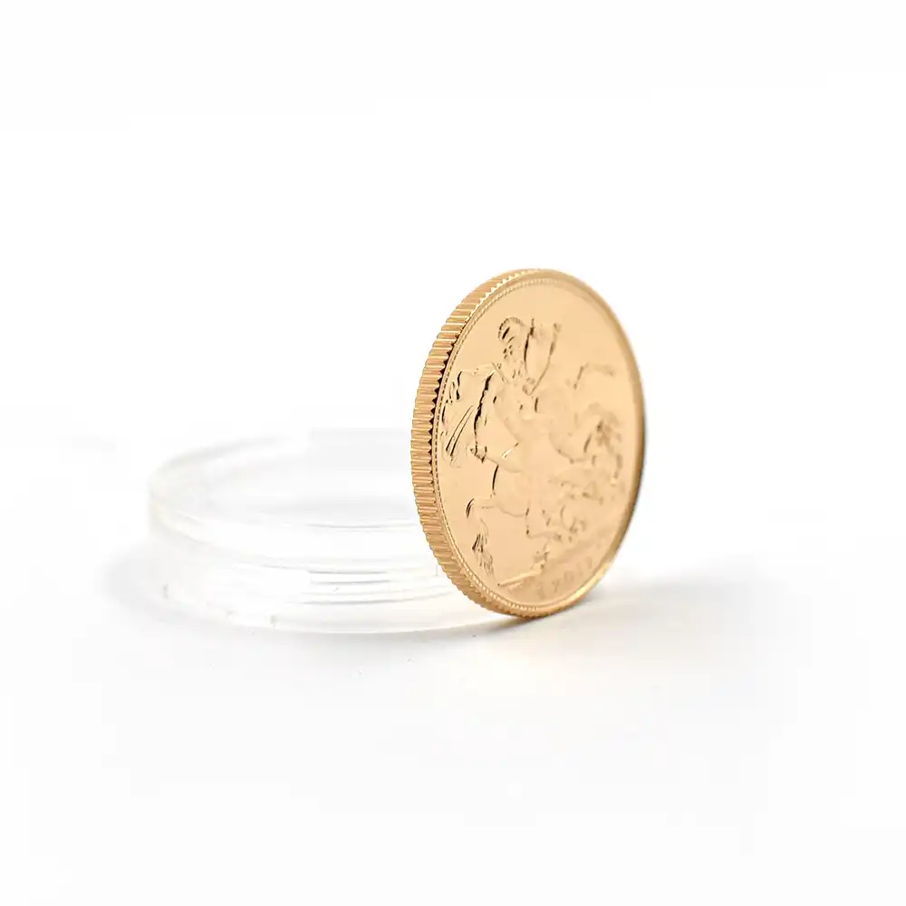 英語で「君主」を意味するソブリン金貨が英国貨幣史上最初に登場するのはテューダー朝の創設者ヘンリー7世の治世下1489年のことで、それまで法定通貨として流通していた天使を描くエンゼル金貨に代わって登場し、玉座に坐る君主が描かれたためソブリンと名付けられました。それ以降、歴代君主の治世を代表する大型金貨として制作されていましたが、共和政と王政復古を経て1663年にはギニー金貨がそれに代わって発行されることになり、以降英国における金貨としてはギニーのみが発行されることになります。その見栄えのする大型の外観によって古来コレクター垂涎の名品とされ、親しまれ続けたソブリン貨ですが、ジェームズ1世の治世下の1604年に考案されたユナイト金貨がその地位を継承し、ソブリン貨は一旦英国貨幣史上から姿を消します。完全に歴史の闇に埋もれたかに見えたソブリン貨ですが、1816年に英国が新しい貨幣法を制定し、金本位制を採用した際に名称のみが奇跡的に復活します。これによって本位金貨が制定され、1817年にはソブリン金貨としての再出発を果たします。金貨の鋳造自体は1817年に開始されましたが、実際に紙幣との兌換が開始されたのは5年後のことでした。それ以降1ソブリン=1ポンドの兌換率を維持し、歴代国王の治世を象徴する第一級の金貨として継承され、近代英国貨幣史の変遷を辿ってきました。1952年のエリザベス2世の即位後もソブリン貨はロイヤルミントによって発行され続け、英国モダンコインの白眉としてコインコレクターを始めとする世界中のコイン関係者たちの限りない賞賛の対象として存続し、世界を魅了し続けて来ました。