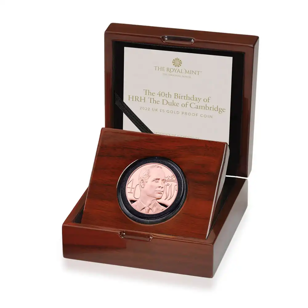 2022 エリザベス2世 ケンブリッジ公爵ウィリアム誕生40周年記念 5ポンドプルーフ金貨 未鑑定 箱付き【ご予約承り品】