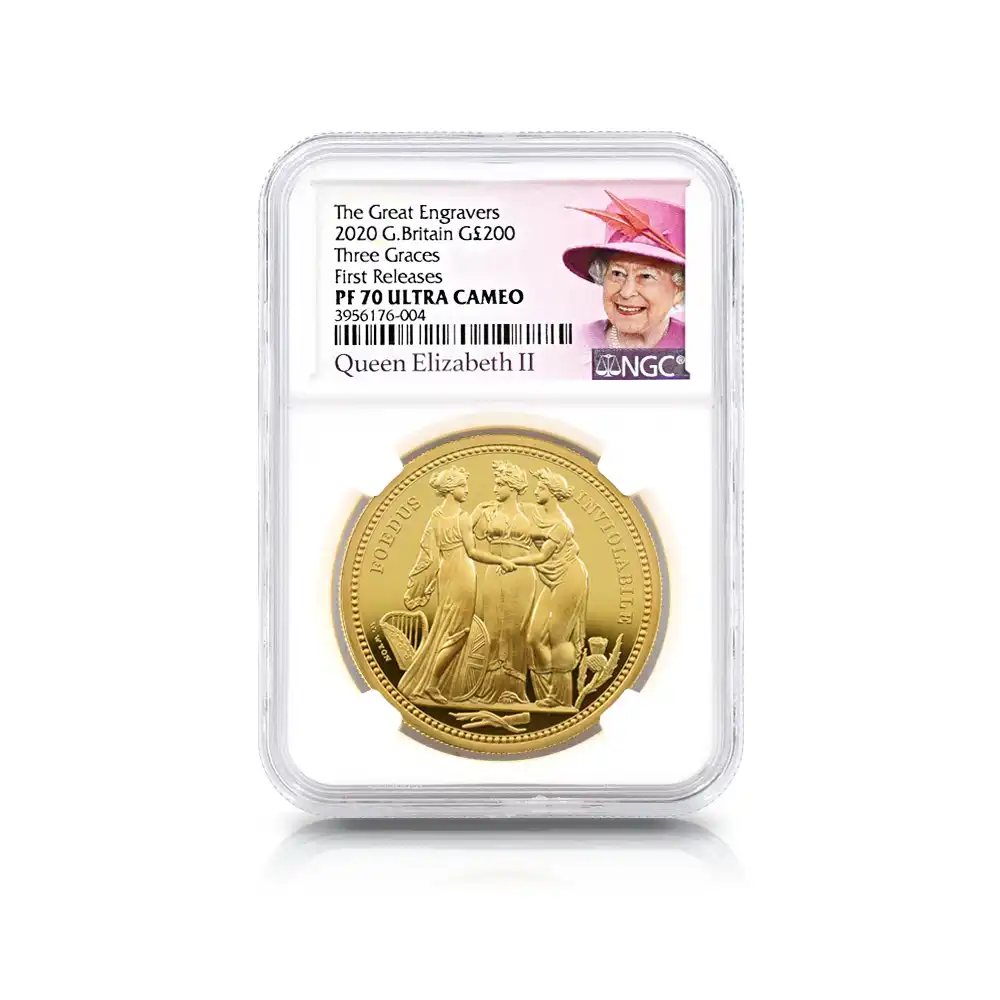 2020 エリザベス2世 スリーグレーセス 200ポンド2オンス金貨 ファーストリリース NGC PF70UC 箱付き
