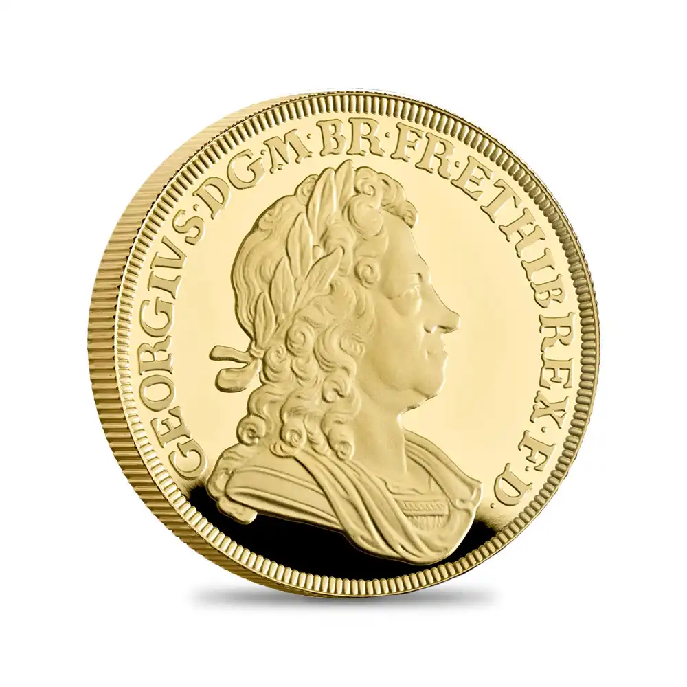 2022年度前半の英国貨幣界最大の成功を収めた人気コインシリーズ「英国君主コレクション」ですが、この度、堂々の第3弾を迎えます。前二作によってコレクションの方向性を明確に提示し、歴史的考証に基づく秀逸なデザインによって英国コインならではの魅力を最大限アピールして空前の成功を収めました。そして迎えた第3弾は、オリジナルデザインを忠実に再現しながらも21世紀ならではの技術の駆使によって英国王室の過去の栄光をコイン上に浮き彫りにします。今回は、18世紀初頭のイングランドにおいてハノーヴァー朝を創設したジョージ1世の治世下に制作されたオリジナルコインデザインにスポットを当てます。神聖ローマ帝国の支配下における選帝侯家出身のジョージ1世は生粋のドイツ人であったため、英国王位からは遠い存在であると見なされていました。しかし、国王は実母である選帝侯女ゾフィーの血統を通じて英国ステュアート朝と血縁関係にあり、1701年に制定された王位継承法によりますと継承権第2位の保持者でもありました。ステュアート朝末期は動乱の世で、熱烈なカトリック信仰によって名誉革命を勃発させたジェームズ2世の圧政を始め、王位継承を巡る反乱を主導したジャコバイト派の暗躍など、数々の事象に翻弄されます。そして何よりも深刻なことに、後継者問題によって王朝の継続が困難となり、遂にアン女王の治世を最後に滅亡の一途を辿ることになります。1714年のアン女王の崩御は、その後の英国の命運を示唆する新時代の到来を実現し、ドイツから招かれたジョージ1世の統治の下に新たな王朝が築かれました。英語を解せず、英国の政情に無関心であった新国王は、国内の政治を首相ウォルポールに一任し、その心は常に故郷のハノーファーにあったと言われています。この国王の英国に対する無頓着が偶然にも王室と議会の適度な距離感を生み、「君臨すれども統治せず」を標榜する英国独自の立憲君主制に繋がったことは英国史が物語っている通りです。