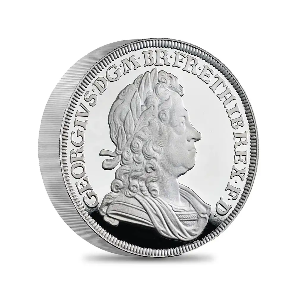 2022年度前半の英国貨幣界最大の成功を収めた人気コインシリーズ「英国君主コレクション」ですが、この度、堂々の第3弾を迎えます。前二作によってコレクションの方向性を明確に提示し、歴史的考証に基づく秀逸なデザインによって英国コインならではの魅力を最大限アピールして空前の成功を収めました。そして迎えた第3弾は、オリジナルデザインを忠実に再現しながらも21世紀ならではの技術の駆使によって英国王室の過去の栄光をコイン上に浮き彫りにします。今回は、18世紀初頭のイングランドにおいてハノーヴァー朝を創設したジョージ1世の治世下に制作されたオリジナルコインデザインにスポットを当てます。神聖ローマ帝国の支配下における選帝侯家出身のジョージ1世は生粋のドイツ人であったため、英国王位からは遠い存在であると見なされていました。しかし、国王は実母である選帝侯女ゾフィーの血統を通じて英国ステュアート朝と血縁関係にあり、1701年に制定された王位継承法によりますと継承権第2位の保持者でもありました。ステュアート朝末期は動乱の世で、熱烈なカトリック信仰によって名誉革命を勃発させたジェームズ2世の圧政を始め、王位継承を巡る反乱を主導したジャコバイト派の暗躍など、数々の事象に翻弄されます。そして何よりも深刻なことに、後継者問題によって王朝の継続が困難となり、遂にアン女王の治世を最後に滅亡の一途を辿ることになります。1714年のアン女王の崩御は、その後の英国の命運を示唆する新時代の到来を実現し、ドイツから招かれたジョージ1世の統治の下に新たな王朝が築かれました。英語を解せず、英国の政情に無関心であった新国王は、国内の政治を首相ウォルポールに一任し、その心は常に故郷のハノーファーにあったと言われています。この国王の英国に対する無頓着が偶然にも王室と議会の適度な距離感を生み、「君臨すれども統治せず」を標榜する英国独自の立憲君主制に繋がったことは英国史が物語っている通りです。