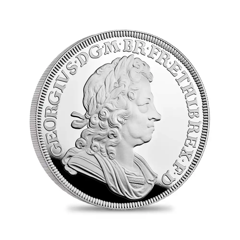 2022年度前半の英国貨幣界最大の成功を収めた人気コインシリーズ「英国君主コレクション」ですが、この度、堂々の第3弾を迎えます。前二作によってコレクションの方向性を明確に提示し、歴史的考証に基づく秀逸なデザインによって英国コインならではの魅力を最大限アピールして空前の成功を収めました。そして迎えた第3弾は、オリジナルデザインを忠実に再現しながらも21世紀ならではの技術の駆使によって英国王室の過去の栄光をコイン上に浮き彫りにします。今回は、18世紀初頭のイングランドにおいてハノーヴァー朝を創設したジョージ1世の治世下に制作されたオリジナルコインデザインにスポットを当てます。神聖ローマ帝国の支配下における選帝侯家出身のジョージ1世は生粋のドイツ人であったため、英国王位からは遠い存在であると見なされていました。しかし、国王は実母である選帝侯女ゾフィーの血統を通じて英国ステュアート朝と血縁関係にあり、1701年に制定された王位継承法によりますと継承権第2位の保持者でもありました。ステュアート朝末期は動乱の世で、熱烈なカトリック信仰によって名誉革命を勃発させたジェームズ2世の圧政を始め、王位継承を巡る反乱を主導したジャコバイト派の暗躍など、数々の事象に翻弄されます。そして何よりも深刻なことに、後継者問題によって王朝の継続が困難となり、遂にアン女王の治世を最後に滅亡の一途を辿ることになります。1714年のアン女王の崩御は、その後の英国の命運を示唆する新時代の到来を実現し、ドイツから招かれたジョージ1世の統治の下に新たな王朝が築かれました。英語を解せず、英国の政情に無関心であった新国王は、国内の政治を首相ウォルポールに一任し、その心は常に故郷のハノーファーにあったと言われています。この国王の英国に対する無頓着が偶然にも王室と議会の適度な距離感を生み、「君臨すれども統治せず」を標榜する英国独自の立憲君主制に繋がったことは英国史が物語っている通りです。