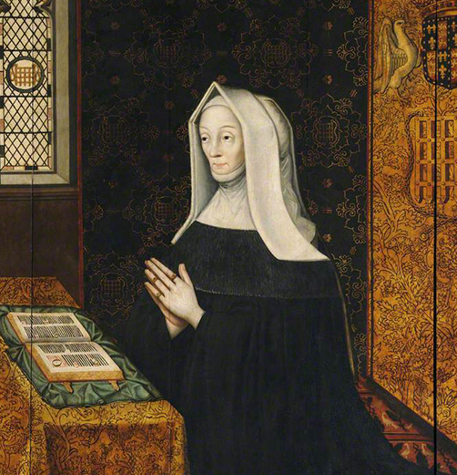 ©ローランド・ロッキー 『マーガレット・ビューフォートの祈り』 それらの作品に見られるイェール像は、優美さと気品を感じさせるとともに、生命力と俊敏さを感じさせる外観が特徴的であったと言えます。特に頭上の角がそれらの要素を暗示させていると伝えられていますが、とりわけ中世期の絵画にはあらゆる方向に向かって伸びる多種多様な角が描かれることが殆どでした。知性を象徴する角とは対照的に、その口元にはこの動物の獣性を想起させる猪の牙のようなものが見受けられます。人間が想像力の限りを尽くして生み出したこの崇高な動物は、薔薇戦争の終結によってイングランドにおける中世期の終焉を決定づけた運命の人にしてテュ―ダ朝の始祖であるヘンリー7世の母、マーガレット・ビューフォートの名に因んで「ビューフォートのイェール」と命名されました。